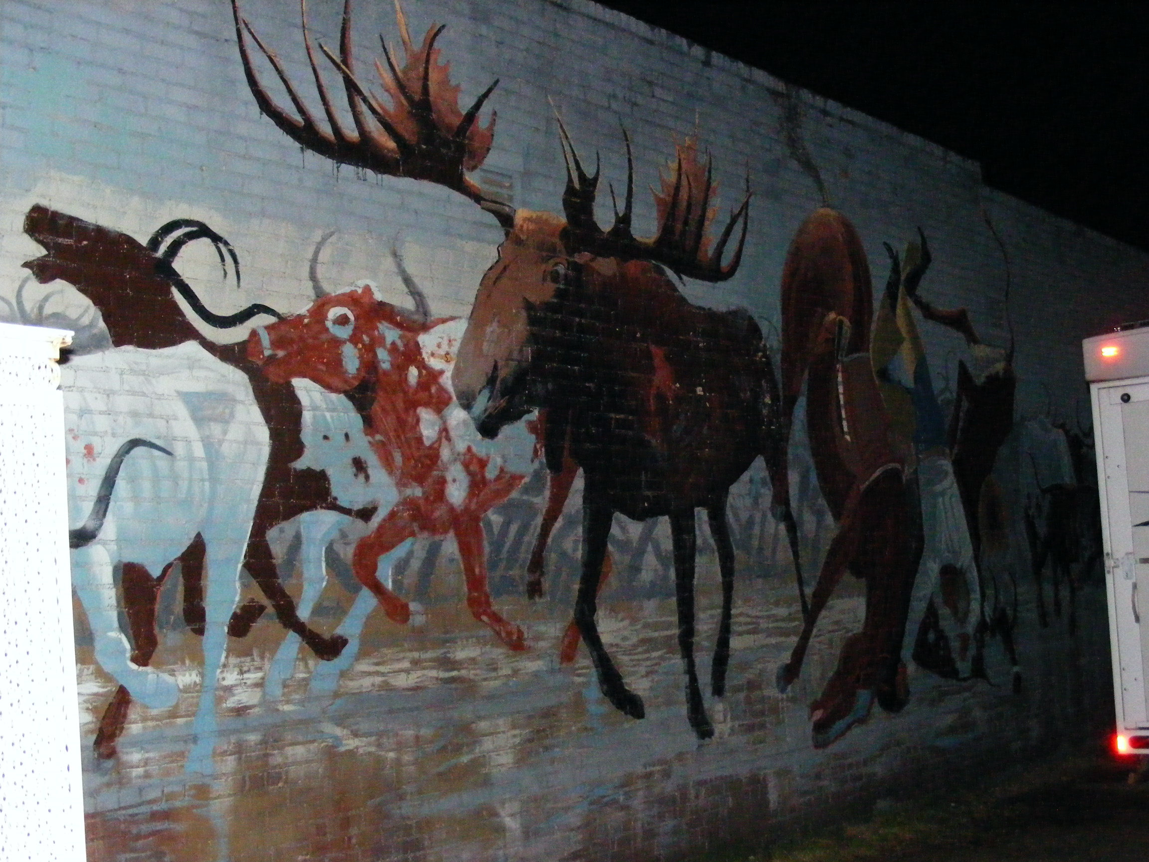 Animal heads surveyed the street.