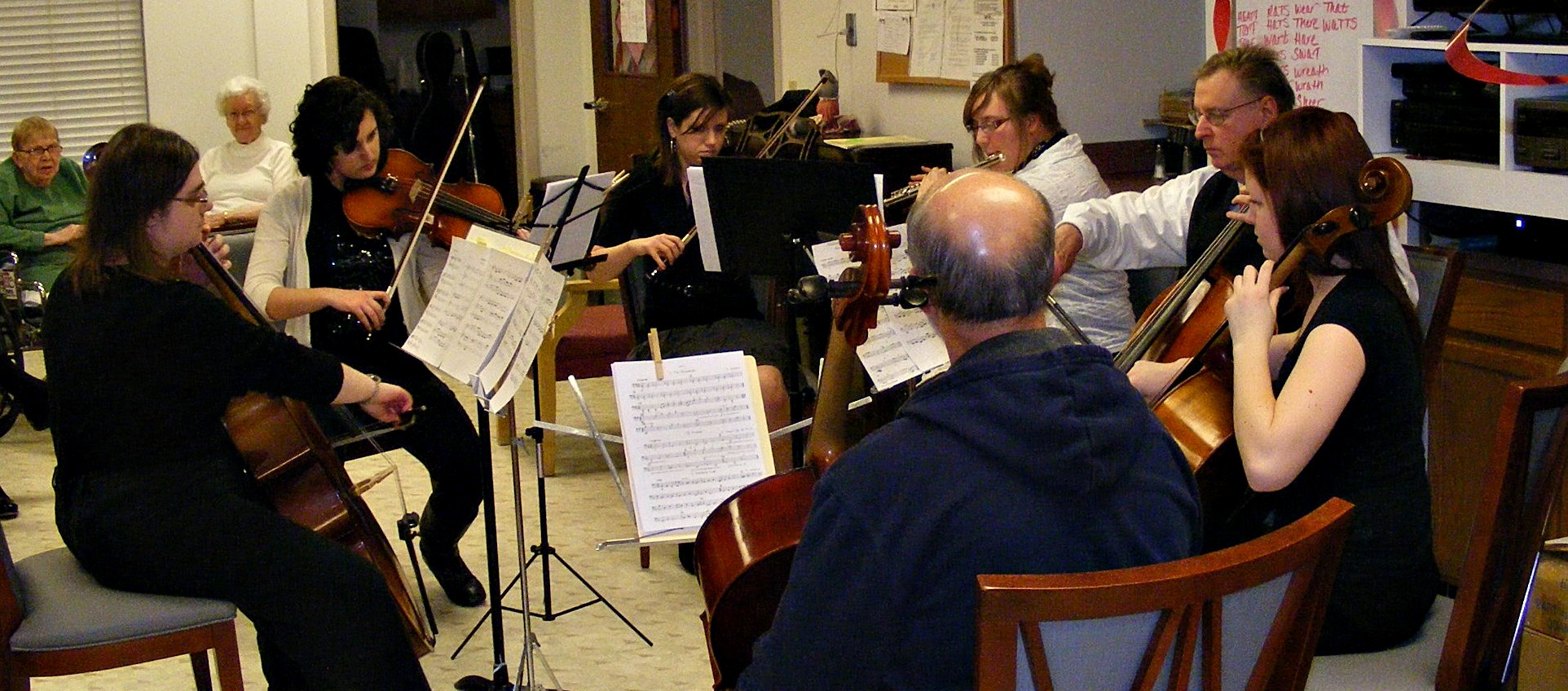 CelloBrationS was welcomed back to Cambridge Village on February 7th for an evening of chamber music. The group played trios by Chopin and Beethoven. The program included Vanhal’s Notturno, a quartet for flute, viola, and cello. The audience was also treated to duets for viola and cello by Telemann and Bach.