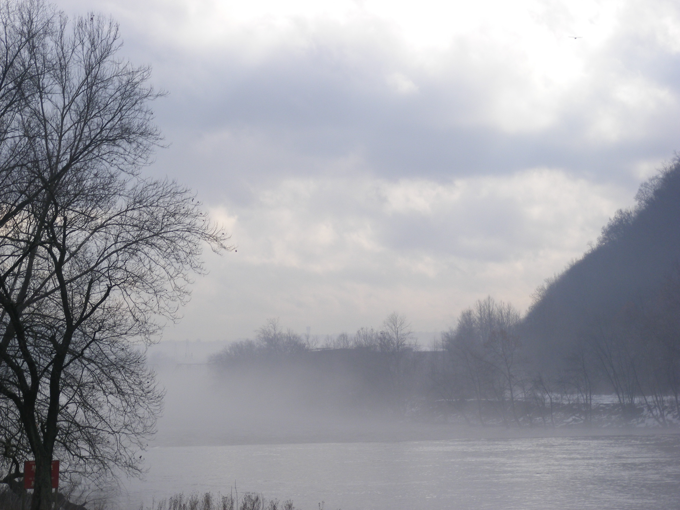 The fog rolled off the river and into the park.